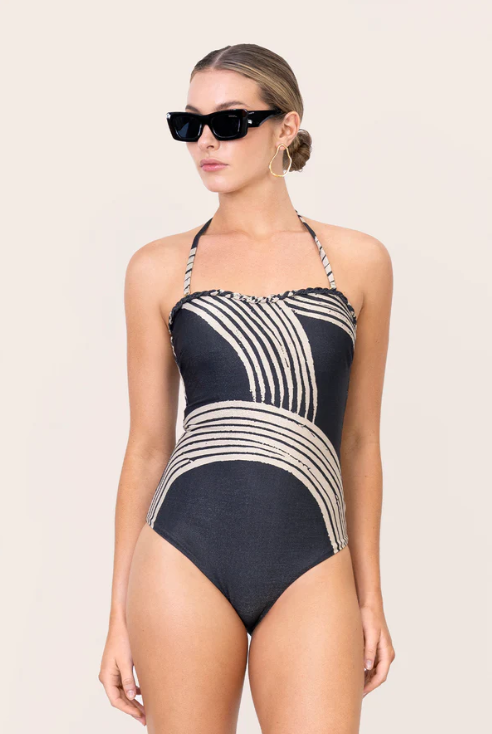 Entero carla es una prenda strapless que combina diseño y funcionalidad con un toque de sofisticación natural. su estampado, inspirado en las líneas fluidas del sol, mezcla una sofisticada paleta en tonos crudo y negro, aportando un aire contemporáneo y refinado. confeccionado en una base textil de acabado brillante en tono dorado, cuenta con copas removibles y un panel de powernet en el centro del frente, que brinda confort, soporte y seguridad. carla es la opción perfecta para los días de verano, y gracias a su diseño versátil, también se transforma en un body elegante para ocasiones especiales. pensado para mujeres que buscan estilo, seguridad y una belleza sutil con carácter atemporal.