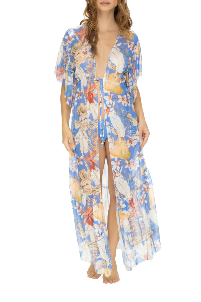 Salida de baño / Kimono largo con abertura frontal y amarre. Prenda versátil que puedes usar sobre tu bikini en la playa, piscina o combinarlo con prendas de tu armario para un outfit streetwear increíble.