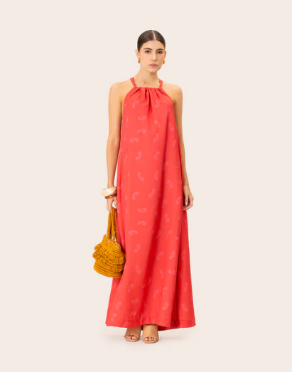 Vestido largo con cargaderas en escote ajustables está confeccionado en una base textil suave y ligera con una textura de paisley, brindando una caída fluida y un movimiento natural. Es un básico imprescindible que destaca por su elegancia sencilla y atemporal. Su diseño versátil lo convierte en la elección perfecta para múltiples ocasiones, adaptándose con facilidad a distintos estilos y momentos del día. Pensado para la mujer que valora la tradición, pero no renuncia a un estilo propio, sobrio y siempre vigente, este vestido celebra la feminidad con sutileza y sofisticación natural.