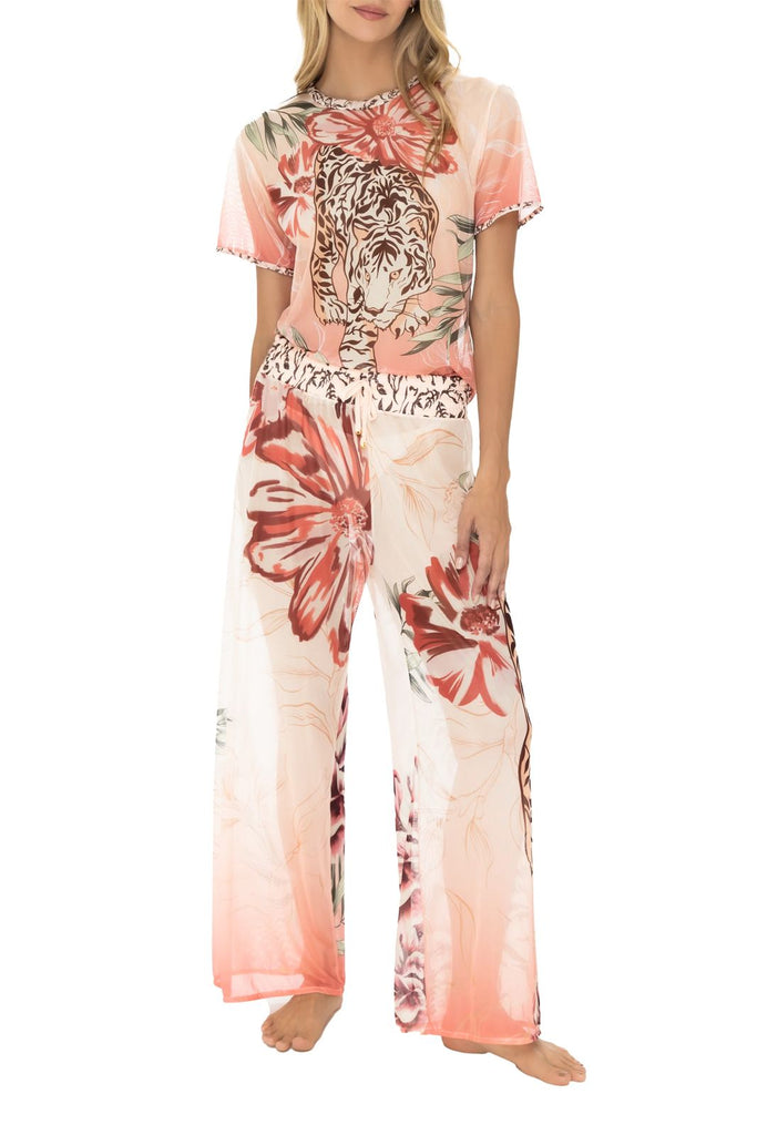 Salida de baño / Pantalón, pantalón de silueta fluida con estampado localizado y pretina elástica. Su diseño cómodo y estilizado lo convierte en una pieza clave para looks de playa o resort con una vibra fuerte y sofisticada.